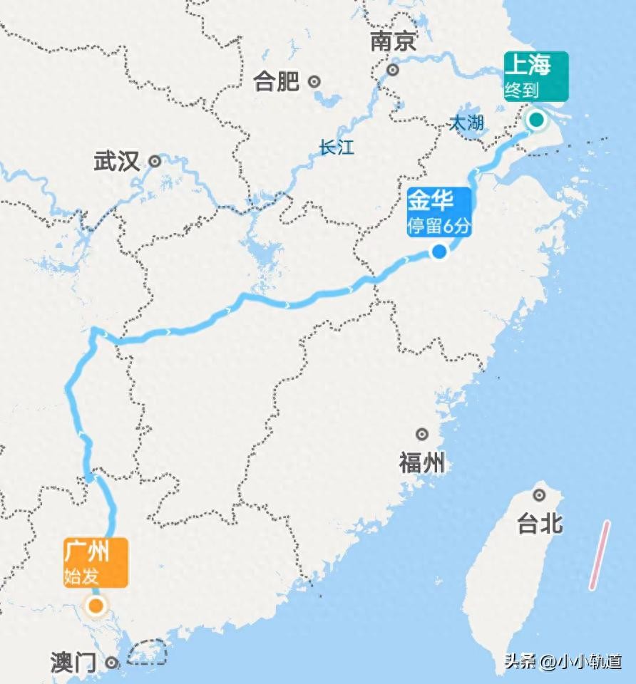 列车途经省份:广东省、湖南省、江西省、浙江省、上海市等1市4省。