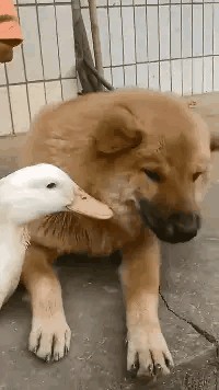 3.一招制敌,鸭子直接把小狗的舌头咬住了。
