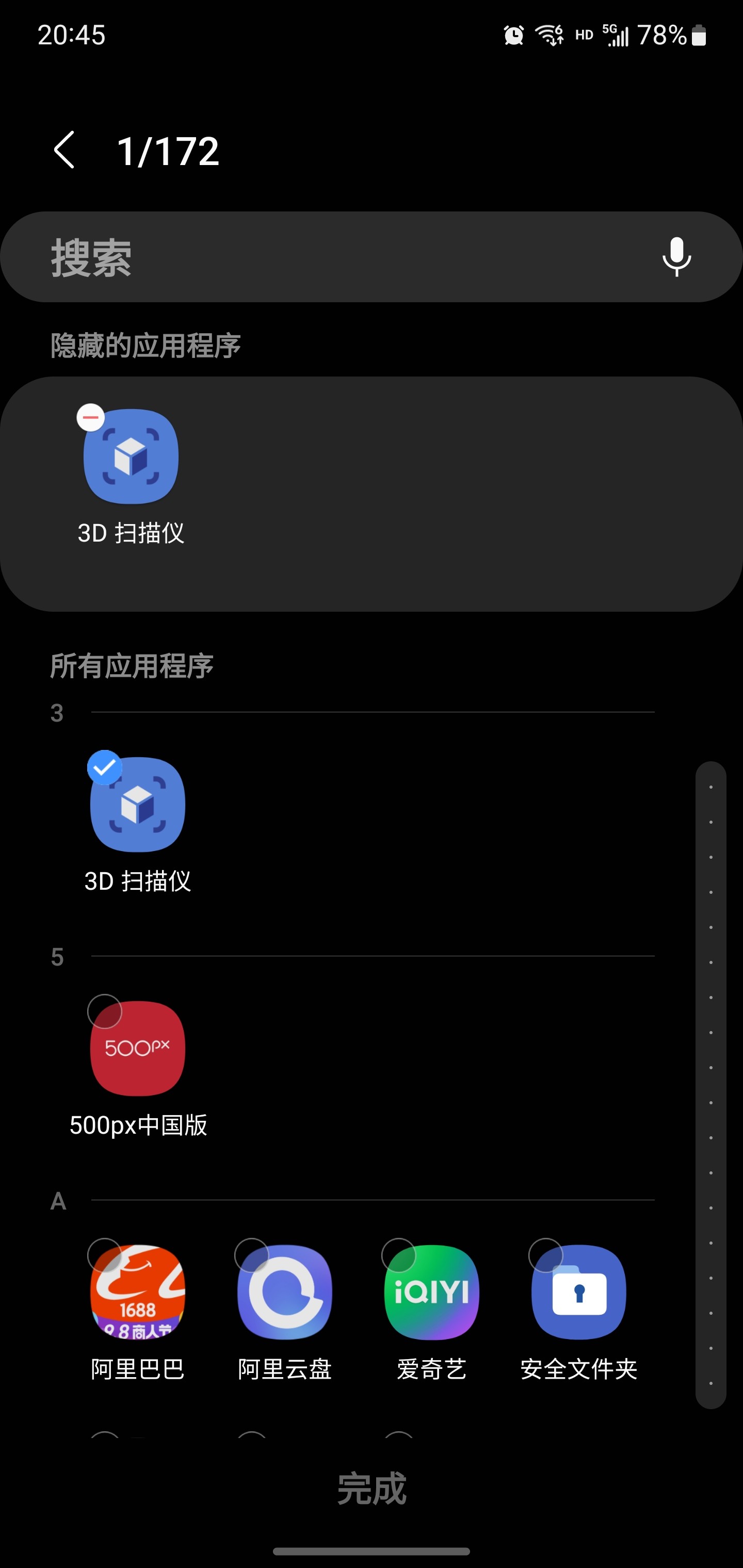 没错!我们不仅可以隐藏桌面上的软件、连侧屏幕中已有的App都能隐藏,是不是非常安心呢!