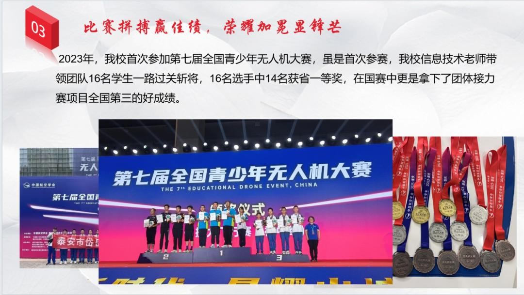 回望过去,展望未来,学校将持续重视航空航天教育在校园的组织与开展、提升无人机文化的传播和影响力,学校也将继续深耕航空航天教育,不断创新工作思路与方法,努力构建更加完善、更具活力的无人机校本课程。助力每一位热爱航空航天、追求飞行梦的老师、学生都能在未来的道路上绽放光彩!(通讯员 陈逸敏)