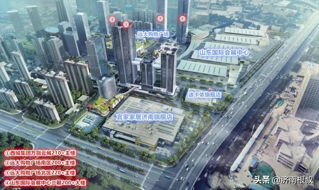 济南远大购物广场,是目前在建的西客站片区最大的商务商业中心,建筑规模超100万平方米。根据规划,项目南区主楼高达202米+,北区主楼高达220米+。项目涵盖五星级酒店、购物中心、精品酒店、高端公寓、国际化影城、精品商街、自营精品超市、体验型儿童乐园等多种业态。