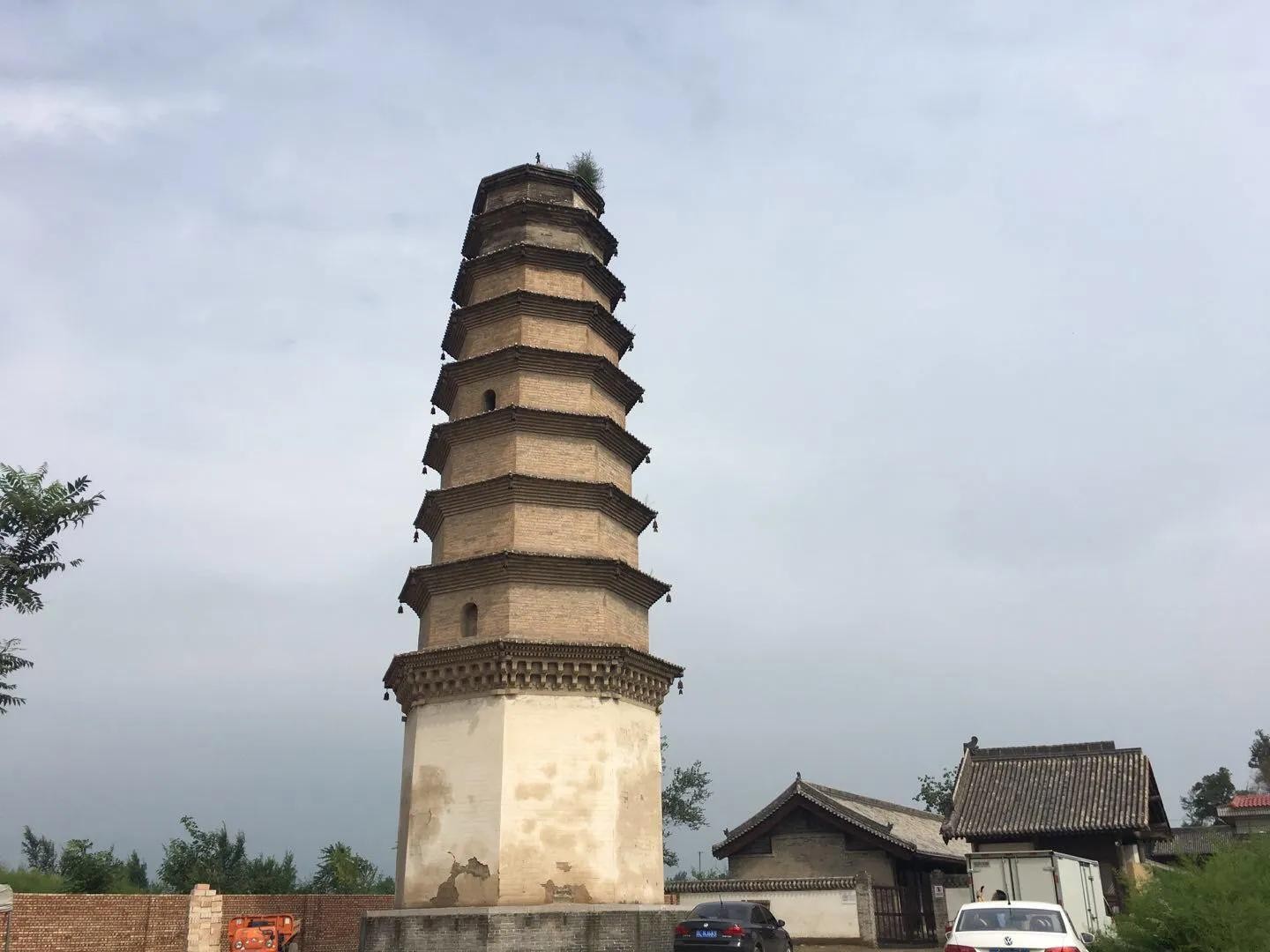 汾城文峰塔,又称“学前塔”,高矗在文庙贡院内。此塔为明代遗构,是古太平县为祈求当地文风蔚盛而修造。塔身通高21.5米,构筑为八角九层空心,是其太平县的地标。现属第六批全国文保—“汾城古建筑群”的子项。
