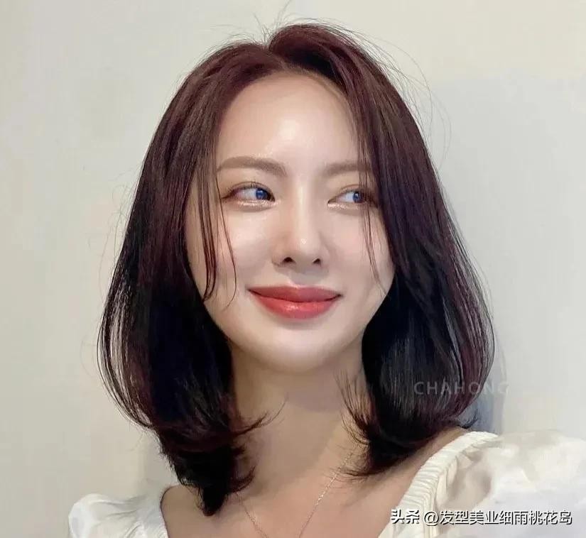 锁骨发的内扣烫发设计,真的非常显瘦,搭配中分修饰脸型,很适合方脸型的女生,发尾的内扣设计将宽脸修饰得更柔和,显得温柔又大方,这样的锁骨烫适合轻熟风的职场女生,简约大方的棕发染很显白,给人落落大方的温柔感。