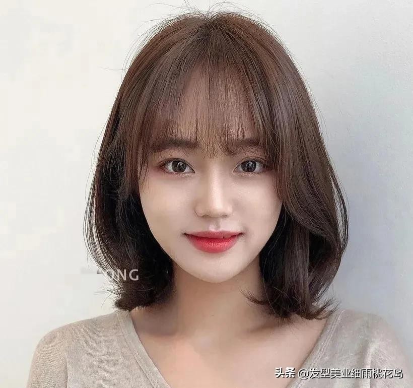 搭配层次感的八字刘海也非常好看,这样的刘海就显得更减龄轻柔,锁骨发的发尾烫一烫,让头发更有蓬松感,显得脸型更娇俏,凸显五官的精致,温柔的奶茶色,显白显气质,烫过的头发一定要尝试的染发设计,首选不出错。