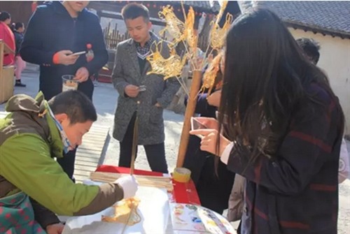 大庙会特色民俗项目吸引游客纷纷前来合影留念