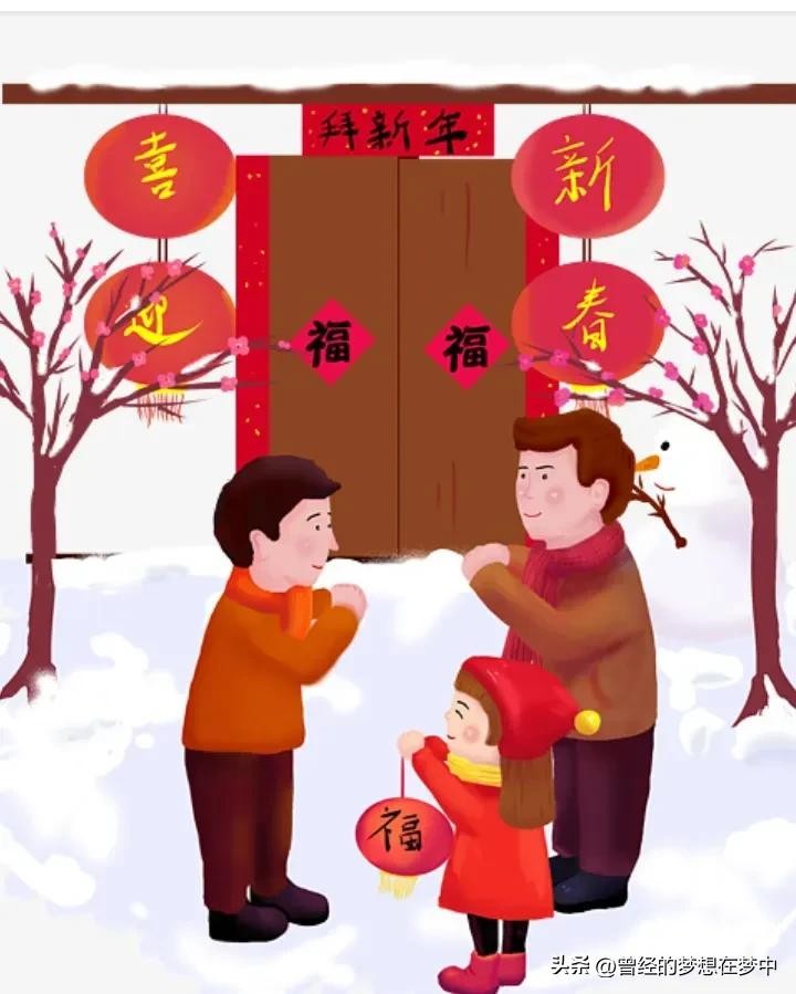 - 拜年:新年期间,亲朋好友之间互相祝贺新年。