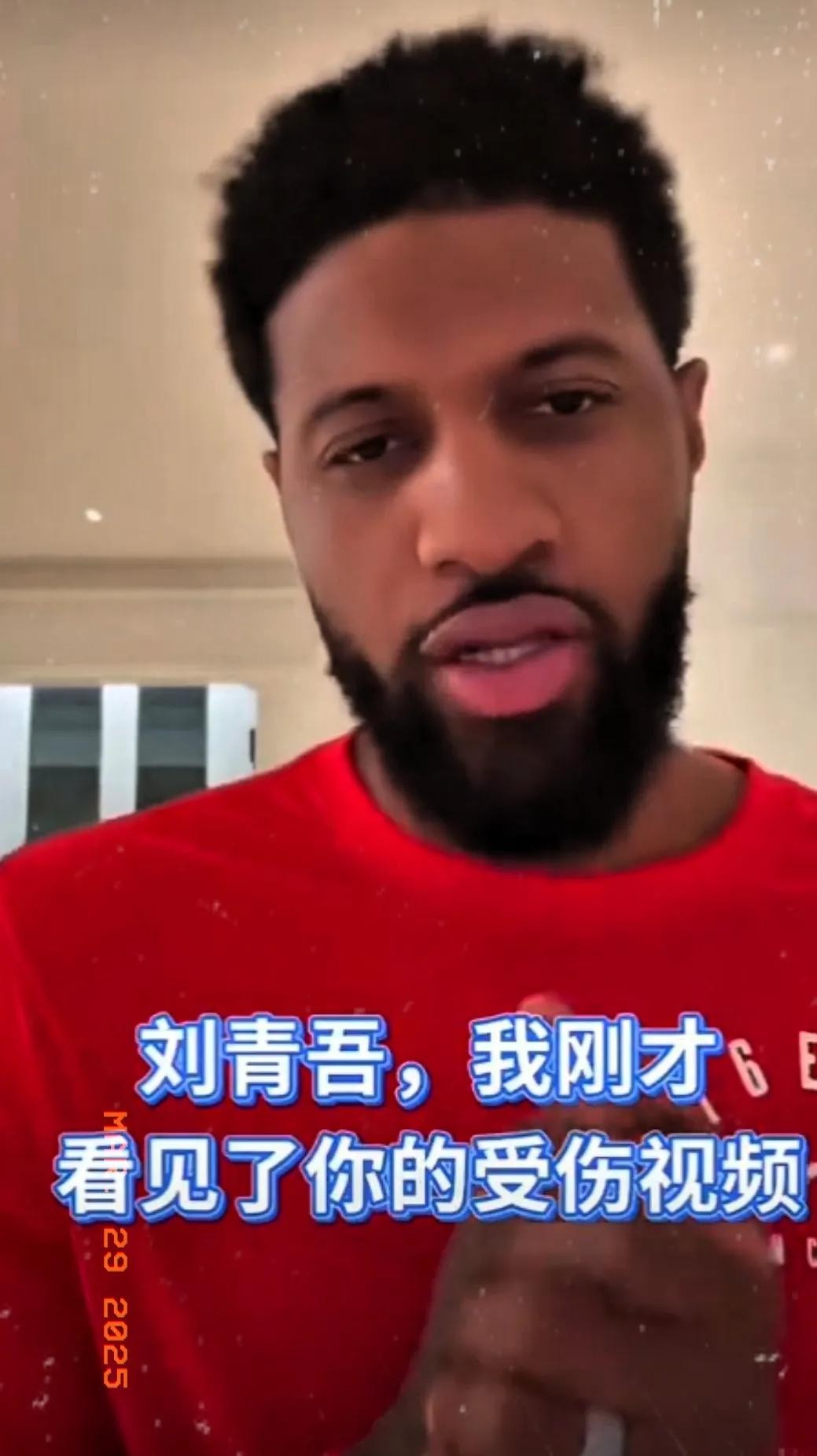3月29日的比赛中,刘青吾在一次突破中失去平衡,右腿重重砸向篮球架,开放性骨折的瞬间被镜头记录,画面令人揪心。次日,乔治通过视频平台发布了一条30秒的祝福视频。画面中,他双手合十,用中文说出“为你祈祷一切会好起来”,并以自身经历鼓励刘青吾:“你会挺过来,成为更坚强的男人和运动员2。”这段视频迅速登上热搜,网友评论:“乔治懂他的痛,因为他也曾经历过地狱般的伤病。”
