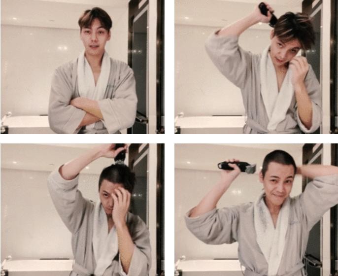 前段时间还凭借#陈伟霆自己动手剪寸头#的话题喜登微博热搜,平时很多小伙伴一剃寸头就毁容,他居然还自己给自己剪!