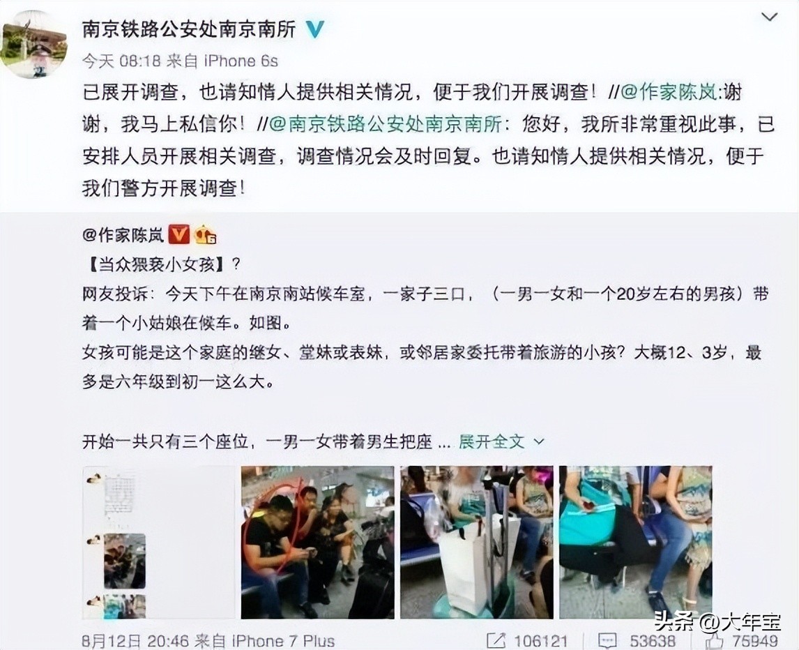 一位作家在自己的社交平台上发布了,在车站候车的时候,看到的一幕