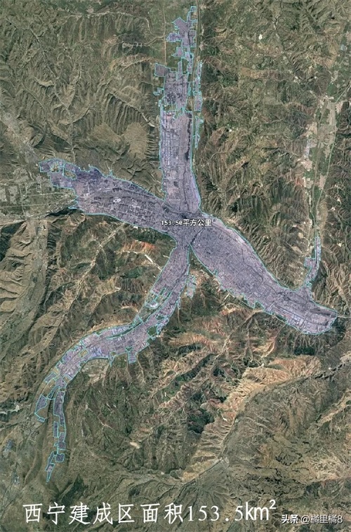 (1)省会西宁市建成区面积最大,为153.5㎞²,海北州西海镇建成区面积最小,为3.79㎞²,最大市建成区面积是最小市的近40.5倍;
