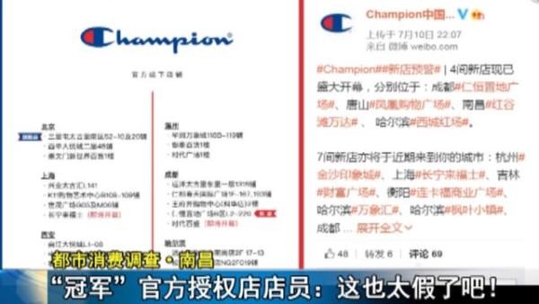 商场内能低价购买冠军品牌衣物,店员:是正版 专卖店:这太假了