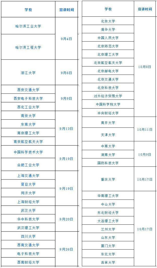 这是中国电科29所今年秋季校招院校与时间安排名单,宣讲时间集中在9月份和10月份中上旬,共计在50所内地大学进行宣讲,在哈工大宣讲方式为线下宣讲,其它49所大学宣讲方式为空中宣讲(线上)。