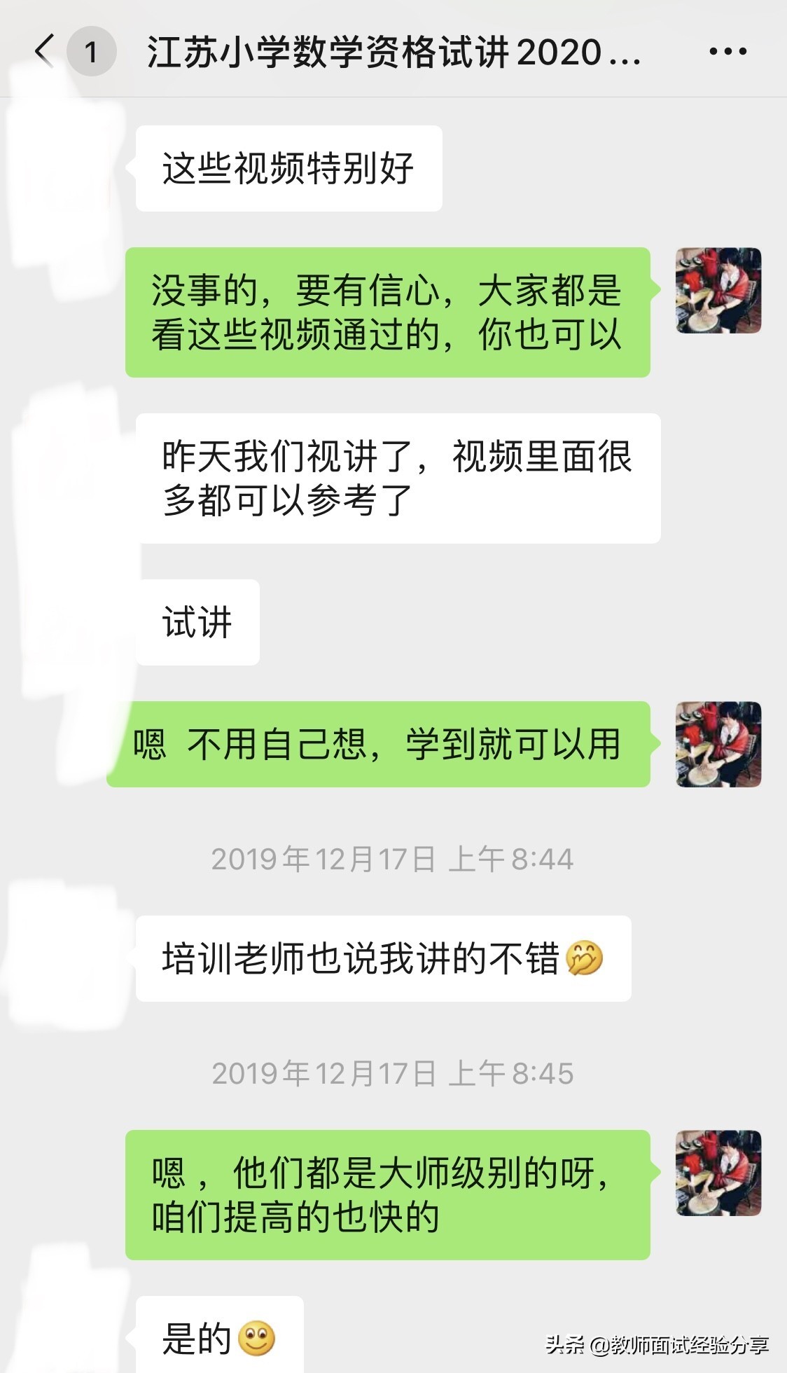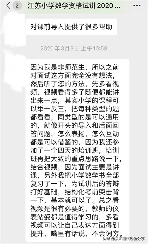 她是江苏的考生,2020年1月5日教师资格证面试,非师范,第一次面试,一次过!