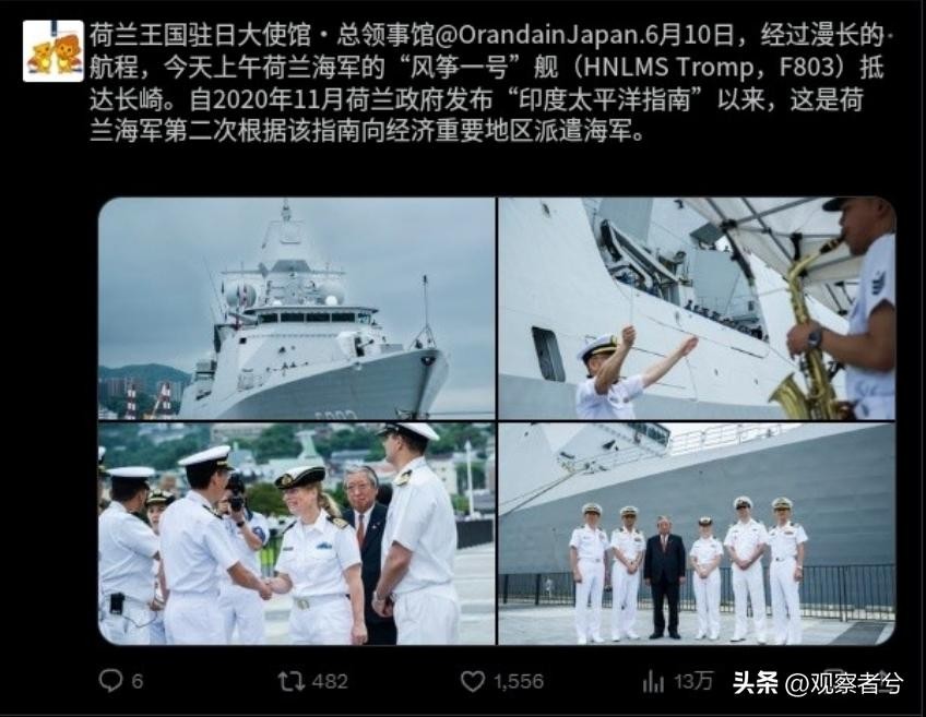 6月10日,经过漫长的航程,今天上午荷兰海军的“特洛普”号舰(HNLMSTromp,F803)抵达长崎访问。自2020年11月荷兰政府发布“印度太平洋指南”以来,这是荷兰海军第二次根据该指南向经济重要地区派遣海军。