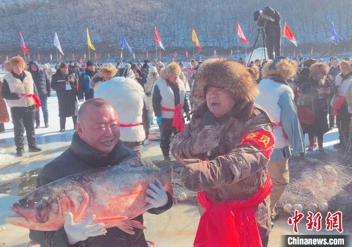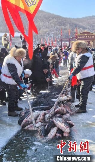 1月12日,中国·镜泊湖第十届冬捕节在牡丹江镜泊湖景区启幕。 牡丹江镜泊湖旅游集团有限公司供图