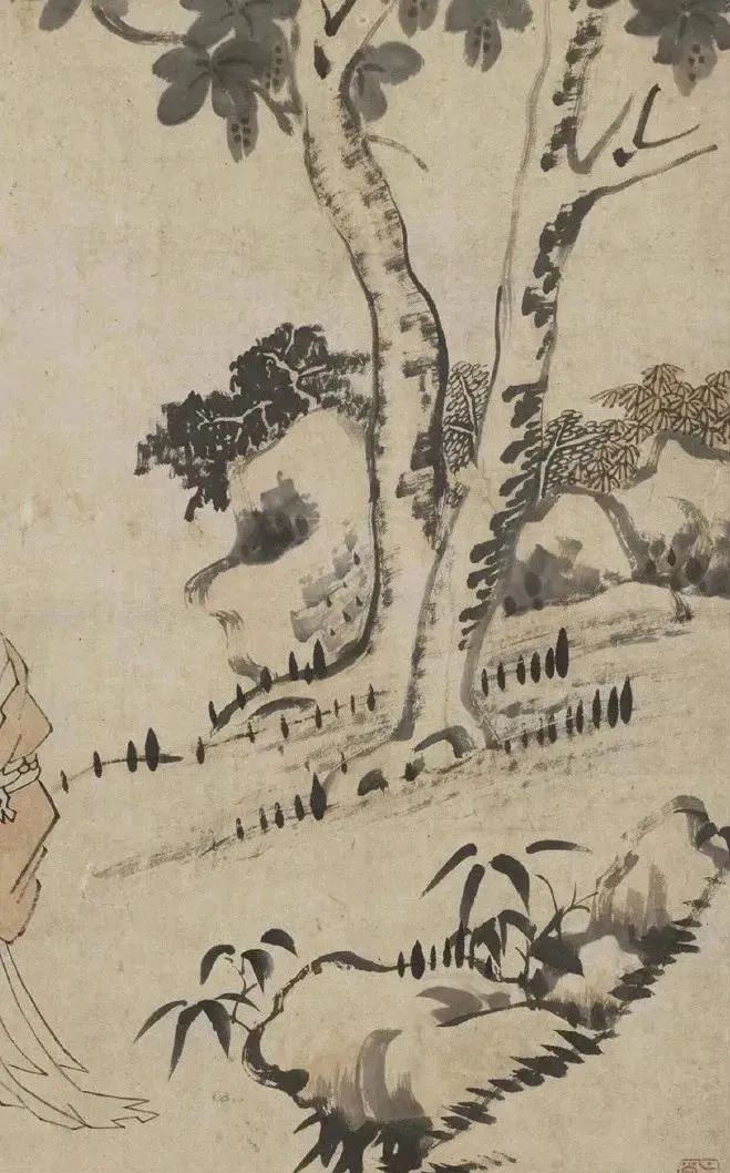 八大山人作为大写意水墨画的代表人物,其画作以笔墨简练、形神兼备而著称。《东坡朝云图》正是他这一艺术特色的集中体现。画中人物形神兼备,情感饱满,让人仿佛能透过纸背感受到苏东坡与朝云之间的温馨与深情。同时,画作的构图和留白也处理得恰到好处,既突出了主体人物,又给人以无限的遐想空间。