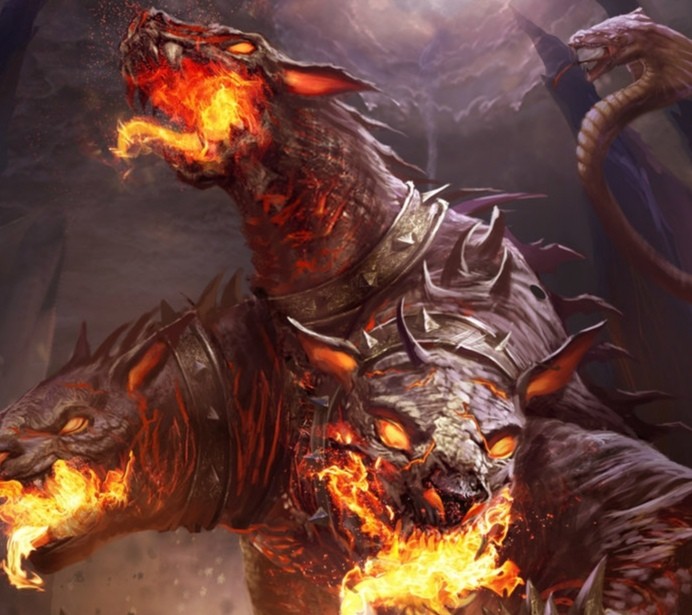 哈迪斯有一个很有名气的宠物,我们都叫它地狱三头犬,其实它的名字是刻耳柏洛斯(古希腊语:Κέρβερος,Kerberos,[ˈkerberos],英语:Cerberus,/ˈsɜːrbərəs/),也称克伯罗斯、基路比罗斯、塞尔伯洛斯、赛伯拉斯、色柏洛斯,希腊神话中看守冥界入口的恶犬,所以也译为地狱犬。赫西俄德在《神谱》中说此犬有50个头,而后来的一些艺术作品则大多表现它有3个头(可能是为了便于雕刻所致);因此在汉语语境里(尤其是通俗文化中)也常称这怪物为地狱三头犬。其名在古希腊语中没有确定的意思,有一说为“斑点”,也有一说为黑暗中的恶魔。