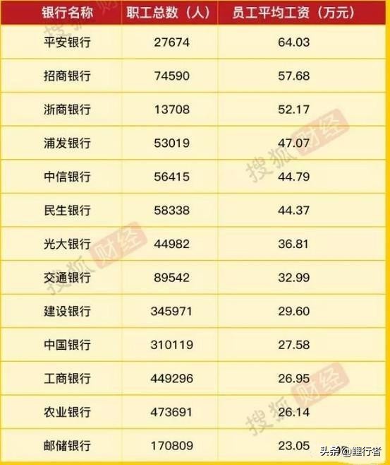 如果说从平均的角度上来看,银行确实是属于高薪行业,但是大家也知道这些数据是被平均的,就像我们马云平均一下,我也能排进国内的富豪榜上。银行员工的收入也属于是“贫富差距”比较大的地方,工资高得让人望尘莫及,工资低得让你也想不到。