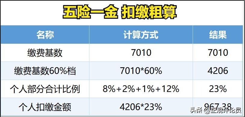 按照黑龙江2024年的基数来看,缴费基数为7010元,而这种一般都是走最低档位,也就是缴费基数的60%即4206元,如果按相应比例同样的缴费基数,那么个人扣缴约为(计算见下图):