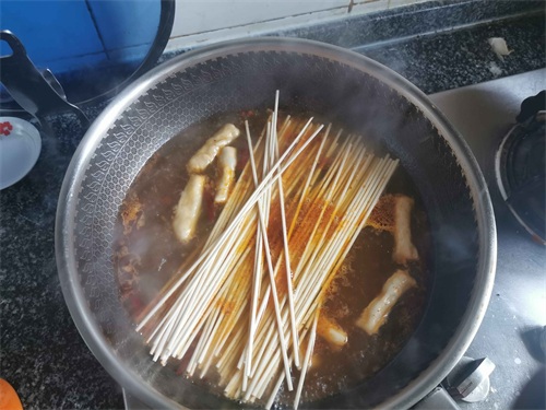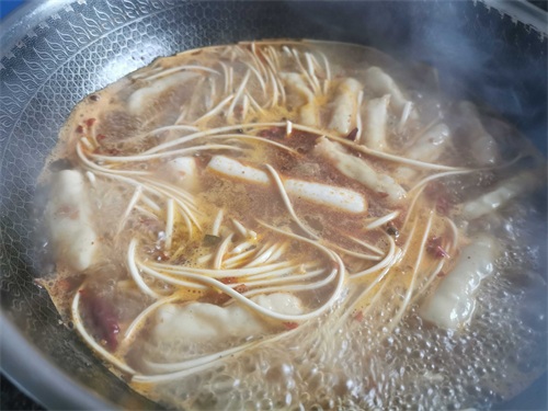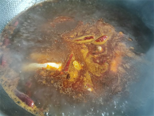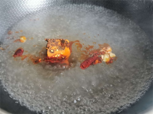 5.水开放入火锅料,喜欢味重点可以再加花椒和生姜,辣椒一起煮