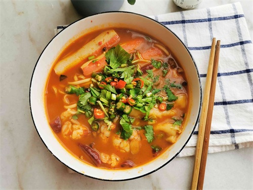 三分钟让你学会麻辣火锅面,懒人做法,简单易学,过足火锅瘾!这段时间可在家憋坏了吧~是不是尤其怀念那口麻辣过瘾的涮火锅!小编就对那口想死了,毛肚、金针菇、鸭舌还有最爱的涮牛肉~与其空想,不如先降低难度,学学今天小编给大家带来的这道麻辣火锅面,麻辣鲜香,让你一饱口福,而且上手简单,足不出户过足火锅瘾!心动不如行动,接下来就跟着小编一起来学习这道麻辣火锅面吧!面条、火锅料备好,这里的火锅料可以选择自己喜欢的口味,食材建议荤素搭配,可以按菜谱来,也可以自己准备,最重要的其实是那口麻辣鲜香!