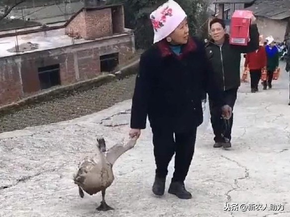 应验了农村那句老话,老“你”大爷还是老“你”大爷,鹅在农村大爷那里就是服服帖帖的。还有不得不说的农村大妈,基本是可以把大鹅修理的小朋友似的,乖的可以。这么看是不是有点牵着个小朋友一起走的错觉。哪还有一点凶猛的大鹅的样子。