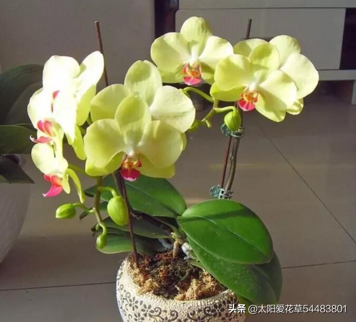 建议:蝴蝶兰对光照需要不是较多,只要保持散射光的环境,它就能长势良好开花漂亮,千万不能曝晒它,生势差也不开花。象室内,只要有微弱的光线即能满足蝴蝶兰生长和开花。