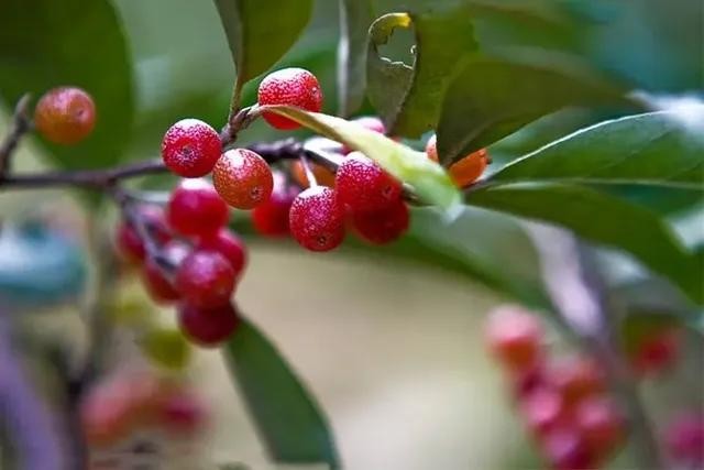 羊奶子有的地方成为鸡公蛋或者牛奶挤,但是不管怎么叫都是因为它的形状而得名,羊奶子看起来是小小的椭圆形果实,当它成熟之后就会变成红黄色,在阳光的照射下变得晶莹剔透,看着非常有食欲。