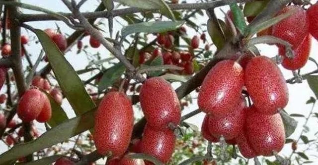 其实所谓的牛奶子就是甜枣,有的地方也将它称为麦粒子,牛奶子的果实与羊奶子非常相似,都是小小的椭圆形果实,成熟之后就是淡淡的红色,唯一不同的就是牛奶子要比羊奶子大一些。