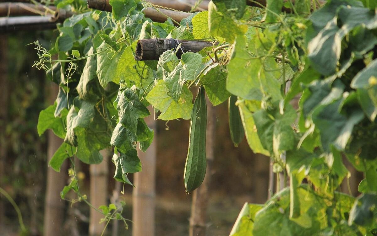 搭架材料准备:丝瓜是藤蔓植物,得搭架子让它爬。可以准备一些竹竿、木棍,或者用铁丝网。搭的架子要结实,能经得住风吹雨打,一般搭成 人字形或者棚架式都可以。