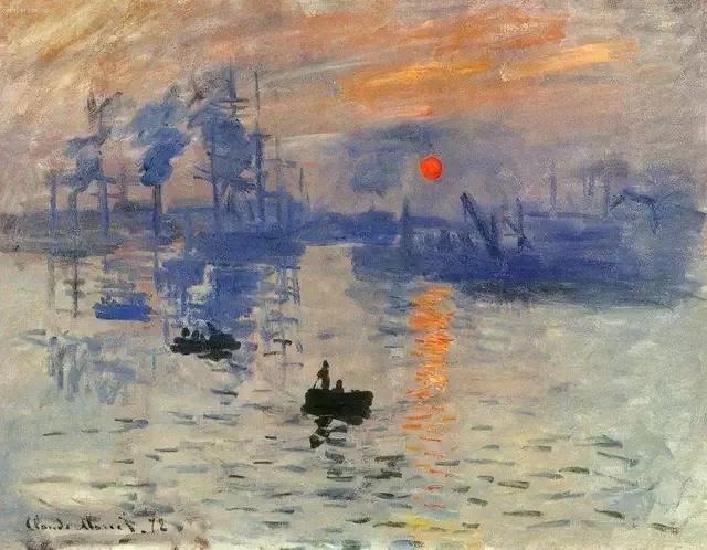 《日出•印象》描绘的是在晨雾笼罩中日出时的港口景象。作品突破了官方学院派绘画的极限,在观察方法及色彩表现上进行了革新,对后市产生了深刻的影响。