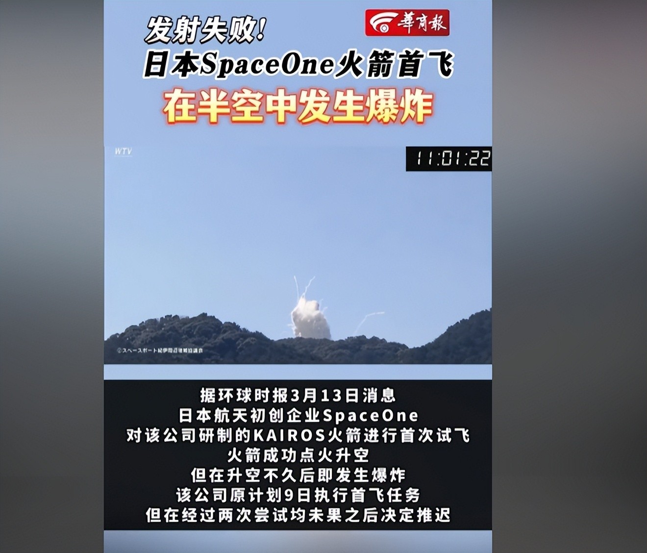 3月13日日本发射火箭失败 网友:年过完了还有大烟花看呢 真好