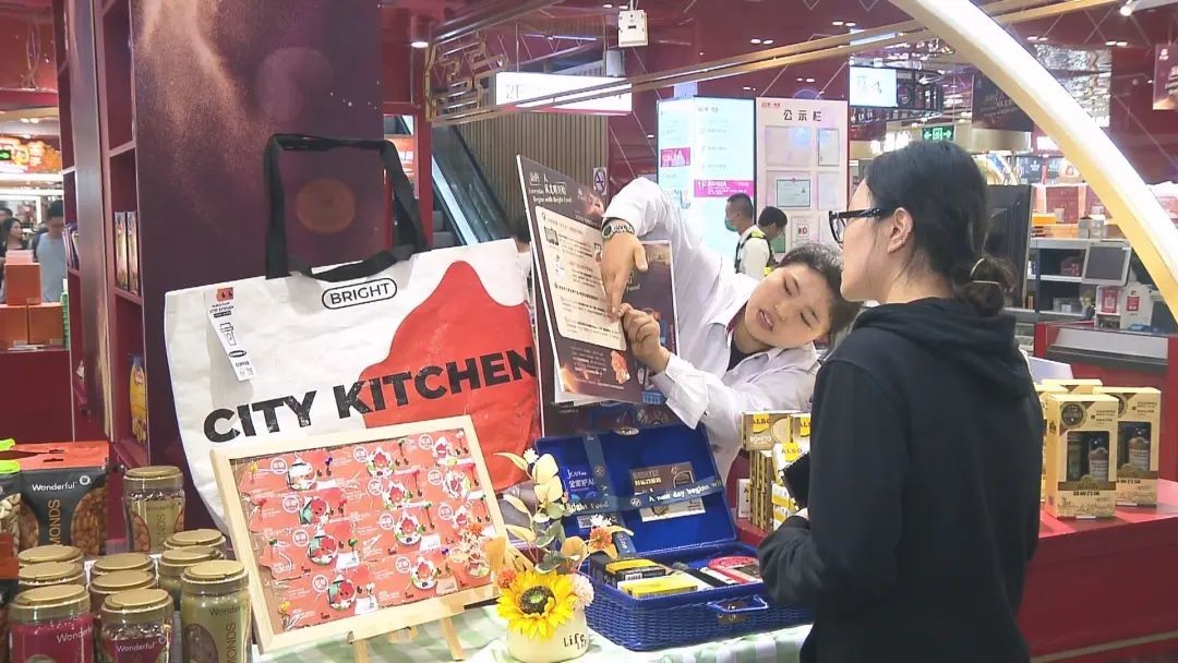 第六届中国国际进口博览会11月5日在上海拉开帷幕。为方便市民游客能够在第一时间购买到进博会同款商品,南京路步行街上的第一食品南东旗舰店专门辟出了“进博专区”,集中展示和销售超过100种进博同款商品,方便市民游客购买。