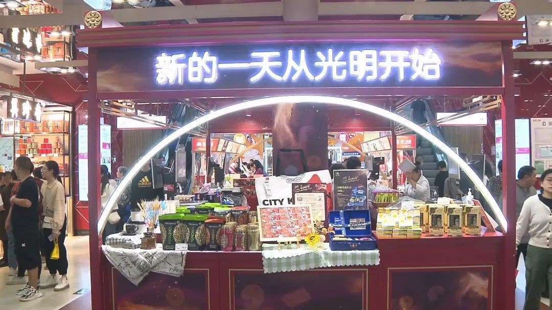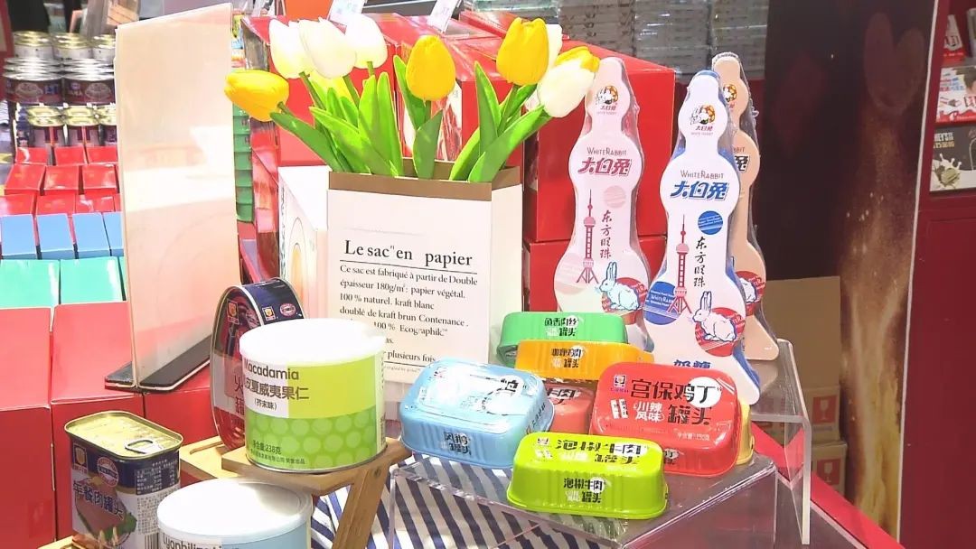 在进店显著位置记者看到,西班牙的金枪鱼、意大利的油醋等多种进口商品,以及第一食品“一食当家”的熟食、梅林的午餐肉和八宝饭罐头等光明集团旗下的老字号代表性商品把四周柜台摆放得满满当当,引得不少消费者驻足。市民成小姐告诉记者,在第一食品看到了进博会同款商品很惊喜,买了西班牙的金枪鱼罐头,也不贵。还买了光明集团的老字号品种,想不到还送了我一个“大大大”的包,很吸引人。
