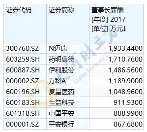 数据显示,2017年,上市公司董事长薪酬最高的是刚刚上市的迈瑞医疗董事长李西廷,2017年薪酬1933万元。排名前八的董事长薪酬合计1.0038亿元,仍不及赵丽颖1.048亿元的收入水平,这其中包含了中国平安、万科、伊利股份等行业巨头。