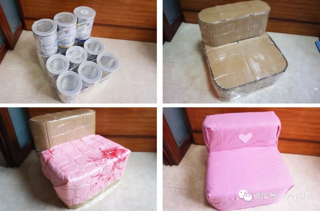 奶粉罐别扔!12个奶粉罐=1张儿童小沙发!旧物改造DIY