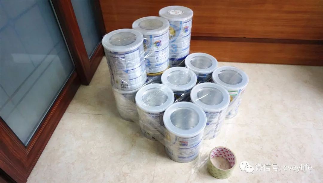 里面用的是这12个奶粉罐,然后里里外外包裹了三层,硬纸板+海绵+厚布。