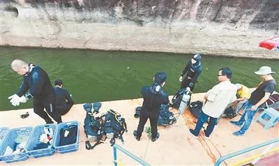 考古队员两个人一组,在十几米深的水下进行了近一个小时的调查,上到平台后已是非常疲惫。