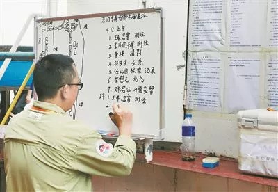 水下考古队的负责人正在布置当天的勘探工作任务。