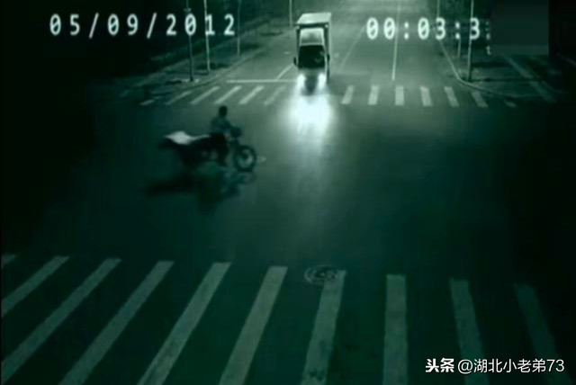 打开视频呢,确实很像那么一回事。我大概描述一下画面。视频显示2012年9月5日,晚上12点,一个十字路口,一辆货车正快速直行,可能由于晚上光线不太好,以至于没有发现一个小三轮,正要撞上小三轮的时候,一个“闪电侠”快速的让小三轮移动到了大车左侧路边。很多不相信的人一看就说是p图,但作为学习专业知识的我来说。从原视频来看,非常清晰,没有任何剪辑 p图的痕迹,以至于当时我还放在动画处理软件上去检析,光线,影子挺到位,结果是,没有p图痕迹!是不是很惊讶,别着急,让我慢慢分析。