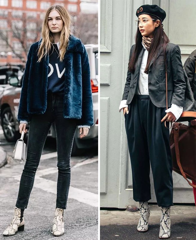 秋冬永远有“动物纹”的一席之地,无论是豹纹、蛇皮纹还是斑马纹,都带着一点小性感和野性气息。想要更独特的时髦感,不妨入手一对动物纹短靴,它可以为沉闷无趣的秋冬穿搭增加一些亮点与乐趣,和服装搭配的时候更容易体现个性,也更容易带出独特的造型感。