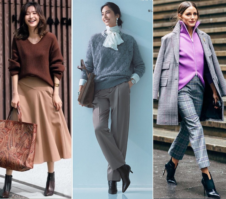 如果不喜欢比较有笨重感的靴子,建议尝试一下尖头高跟短靴,粗跟或者鞋跟的都更有各的好看,粗跟比较容易驾驭,也比较好走路,细高跟的款式看起来更秀气、更轻盈和更有女人味。