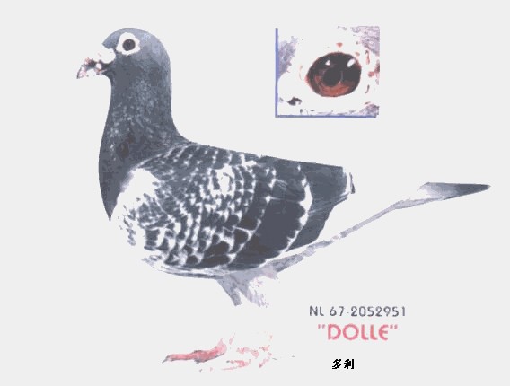 1967年,一羽蓝斑色的公鸽降生在纽·凡塞米镇(NiellW Vassemeer),最初它没有名字,后来,人们称它为杨阿腾“多利”(“DOLLE”),“DOLLE”在英文中是指“淘气鬼”,这是因为它喜欢在鸽舍里玩耍,特别喜欢咬人,这就是“多利”得名的原因。