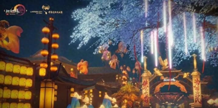 《剑侠江湖》由天街灯市主题区、游龙湾、洛神影院三个景点组成,是青年人领略国风文化魅力的剑侠之城;另据最新消息,本届自贡灯会还将携手剑网3共同打造沉浸式国风主题街市!