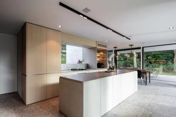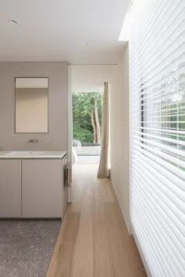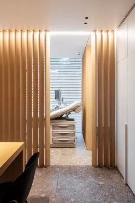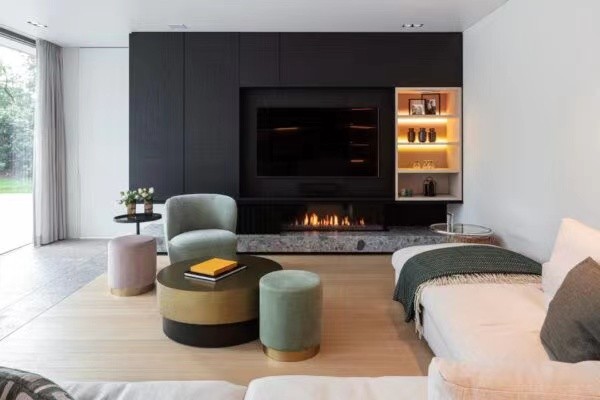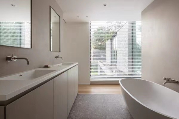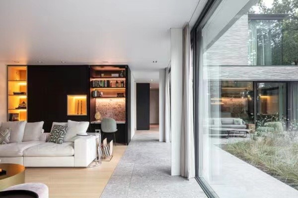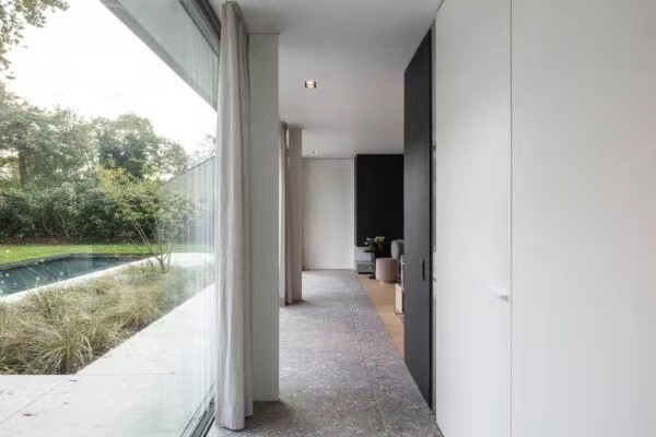 有了美丽的室外风景,室内简约就好。为了与外墙色彩呼应,室内采用了大量的灰色水磨石。同时运用暖色的木作与黑白灰进行冷暖对比,使得室内形象更具有视觉张力。