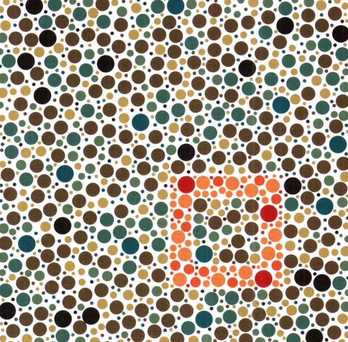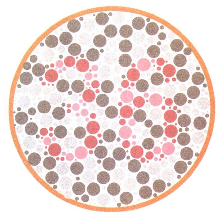 第4幅图就有一些难度了,如果是红色色弱的小伙伴是没有办法识别这张图的,因为这张图的数字是由浅红色的圆点组成。相对来说颜色比较淡一些,没有办法识别也是常见的。但是对于考飞机驾照的小伙伴来说就是毛毛雨啦。