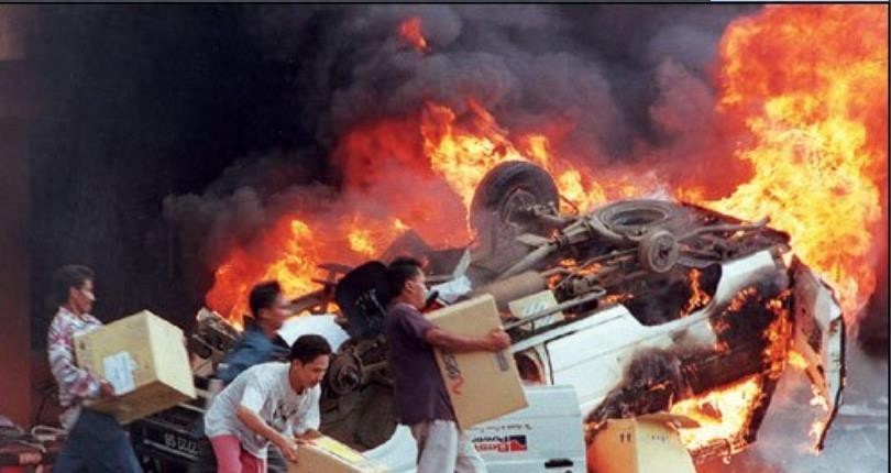 1998年印尼排华事件,5000间华人商店遭烧毁,300华人女子遭强暴
