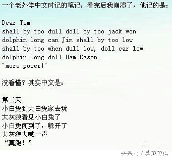 【搞笑中式英语,直接搞晕老外】we two who and who?咱俩谁跟谁阿;you don’t bird me,I don’t bird you 你不鸟我,我也不鸟你;Where cool where you stay!哪凉快上哪呆着;you try try see!你试试看;colour wolf 色狼;dry mother 干妈;dry goods 干货;watch sister 表妹。