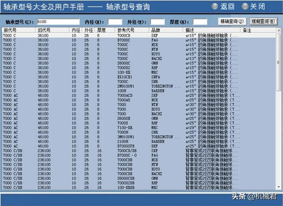 轴承型号查询工具,涵盖了所有的轴承类型,分享给各位机械工程师