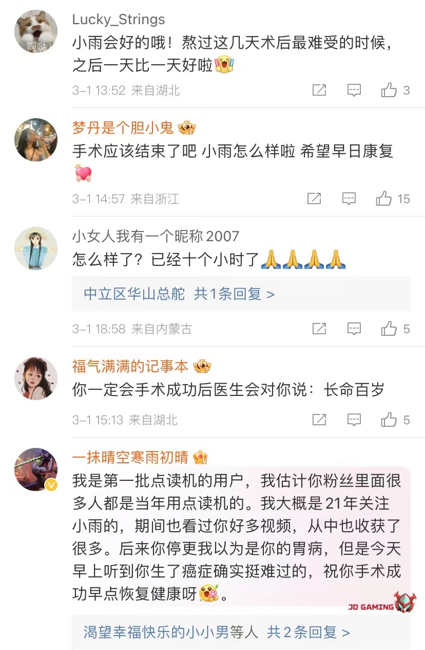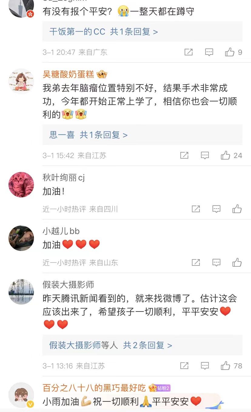 直到昨天,发布了自己的新视频,宣告了即将开颅手术和患病情况。就在今天上午的十点,高君雨社媒由她的妈妈代替发送了新的动态,已经进入手术室,希望一切顺利!评论中的网友也都在为小雨加油祈福!